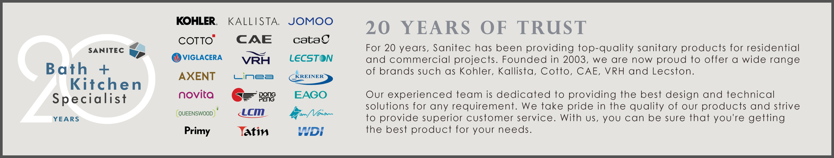 Since 2003, Sanitec has defied the norm and has been providing aspiring homebuilders with exceptional imported brands